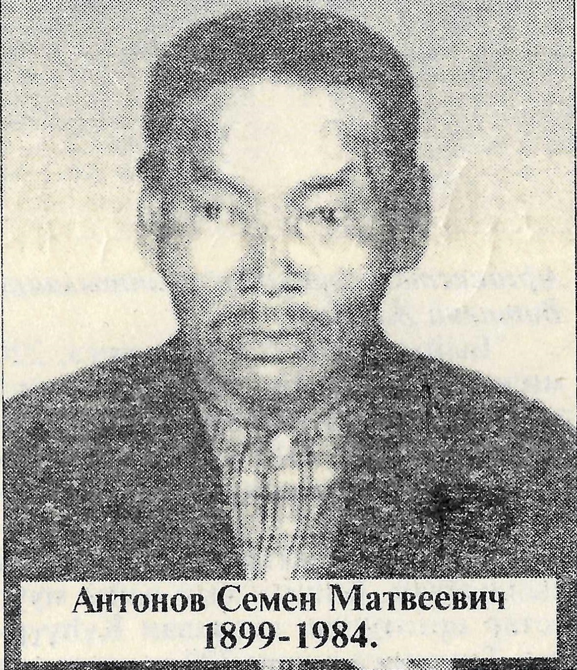 Биһиги нэһилиэкпитигэр олорбут сэрии, тыыл, үлэ бэтэрээнэ Антонов Семен Матвеевич 1899 (1906?) сыллаахха Омолдоон нэһилиэгэр дьадаҥы дьиэ кэргэҥҥэ төрөөбүтэ.
