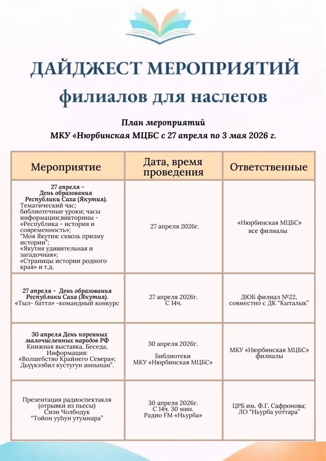 Дайджест мероприятий филиалов для наслегов с 27 апреля по 3 мая