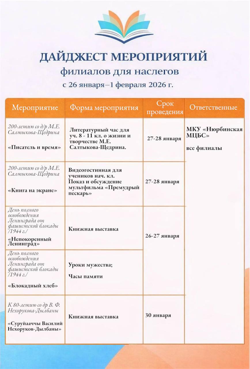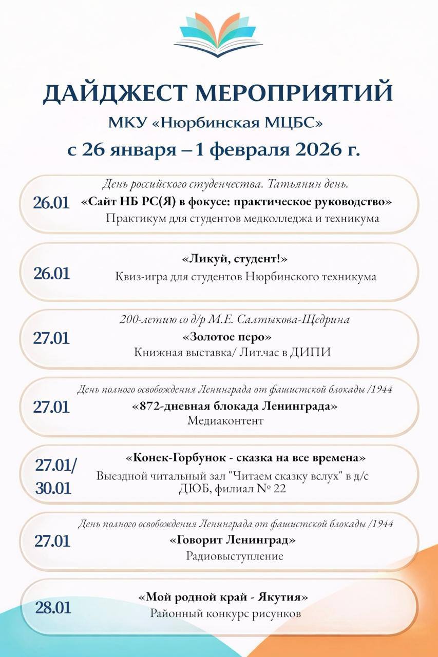 ДАЙДЖЕСТ МЕРОПРИЯТИЙ с 26 января-1февраля
