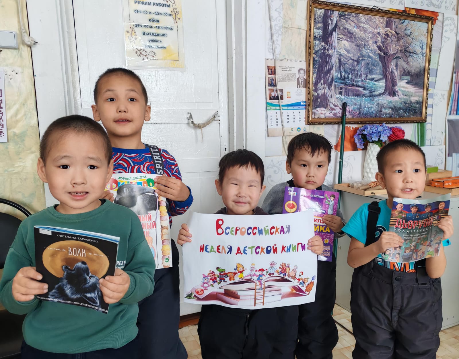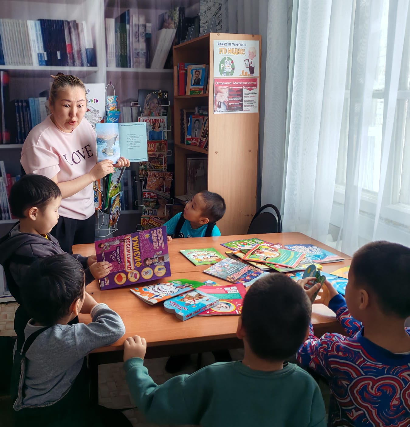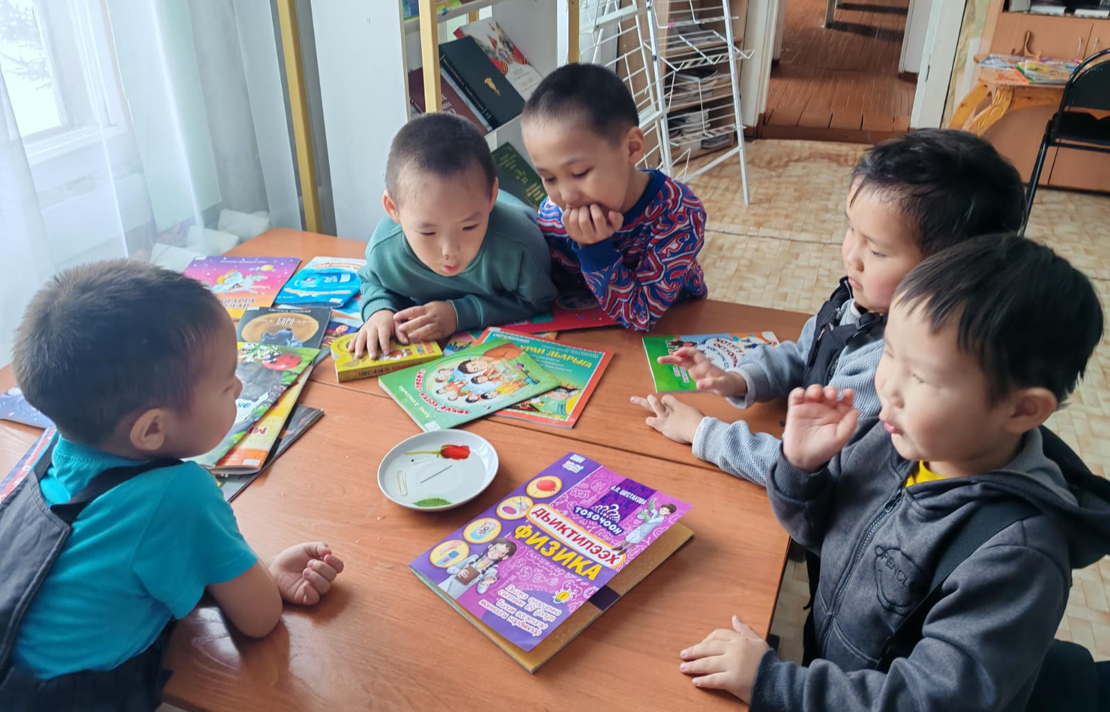 Мэҥэдьэктээҕи 11 нүөмэрдээх библиотекаҕа уһуйаан оҕолоро киирэн кыра саастаах о5олорго аналлаах кинигэ быыстапкатыттан С.Тарасенко “Бөрө” хоһоонунан суруллубут кэпсээни иһиттилэр. «Дьиктилээх физика» А.П.Шестакова кинигэтиттэн «Устар булаапка» уопуту оҥорон астыннылар, сэргэхсийдилэр.