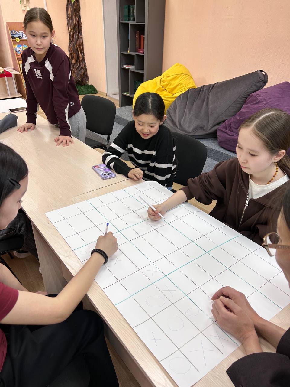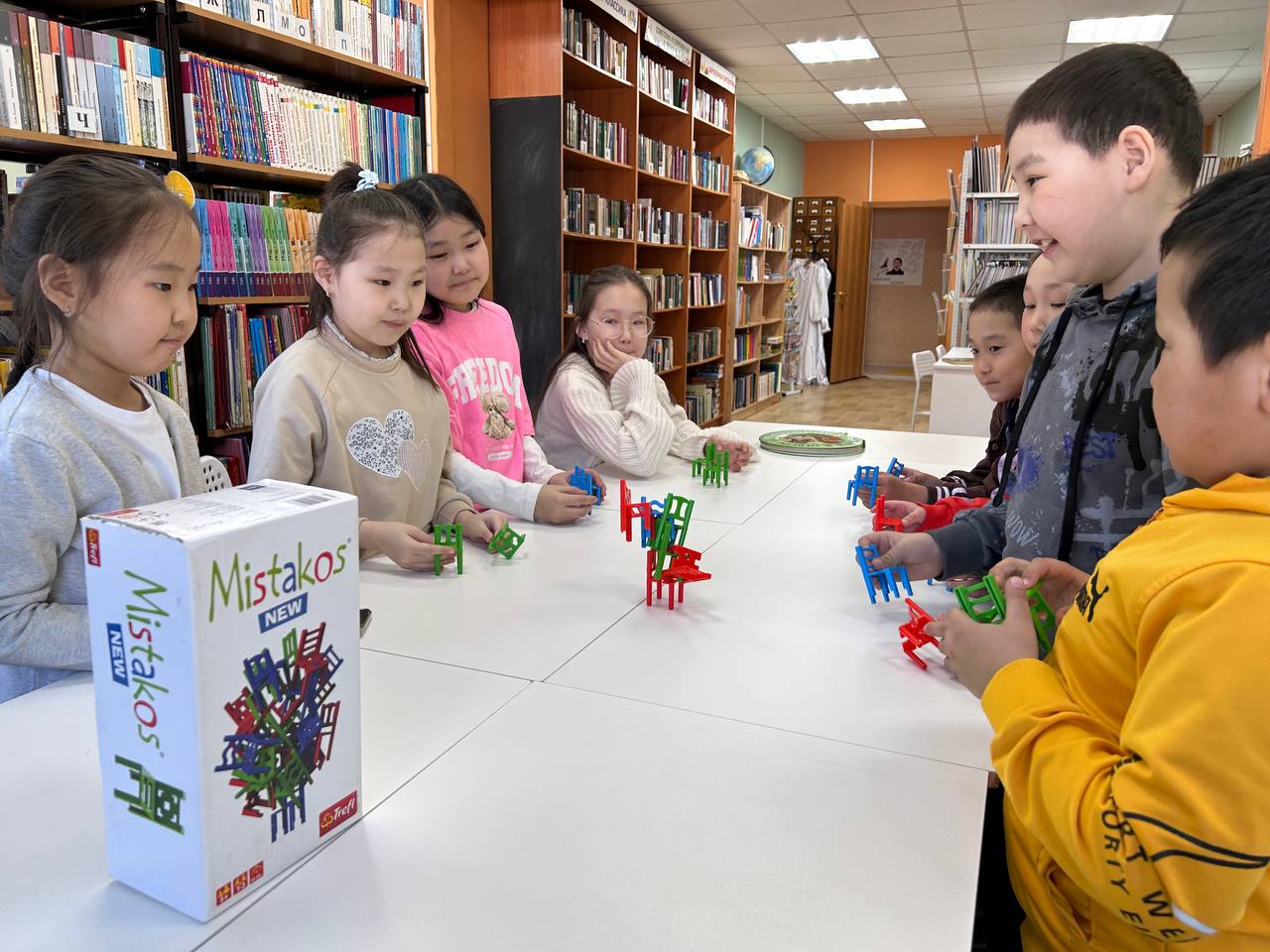 Младшие с головой ушли в разнообразные яркие игры. «Стульчики» — игра на моторику и ловкость рук — вызвала море смеха и здорового азарта. В «ходилках» с кубиками дети азартно бросали кости и наперегонки двигали фишки к финишу. «Memo» помогло тренировке памяти, усидчивости и внимательности. А разные «мас- игры» превратили библиотеку в территорию дружного веселья.