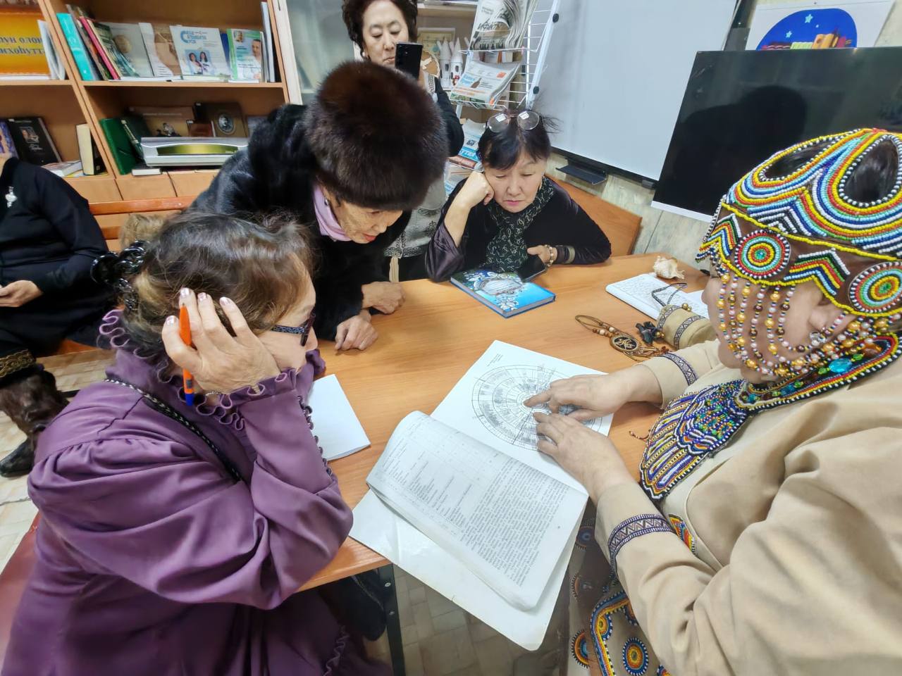 Манна махтаныах этибит, нэһилиэк баһылыгар Вера Федоровнаҕа, билсиһиигэ маҥнайгы хардыыны оҥорон, дьонун-сэргэтин илдьэ кэлбитигэр. Эбэҥки диэн туох дьарыктаах, ханнык тыллаах-өстөөх, хайдах олорор норуотуй диэн билээри –көрөөрү төгүрүк остуол тэрилиннэ.