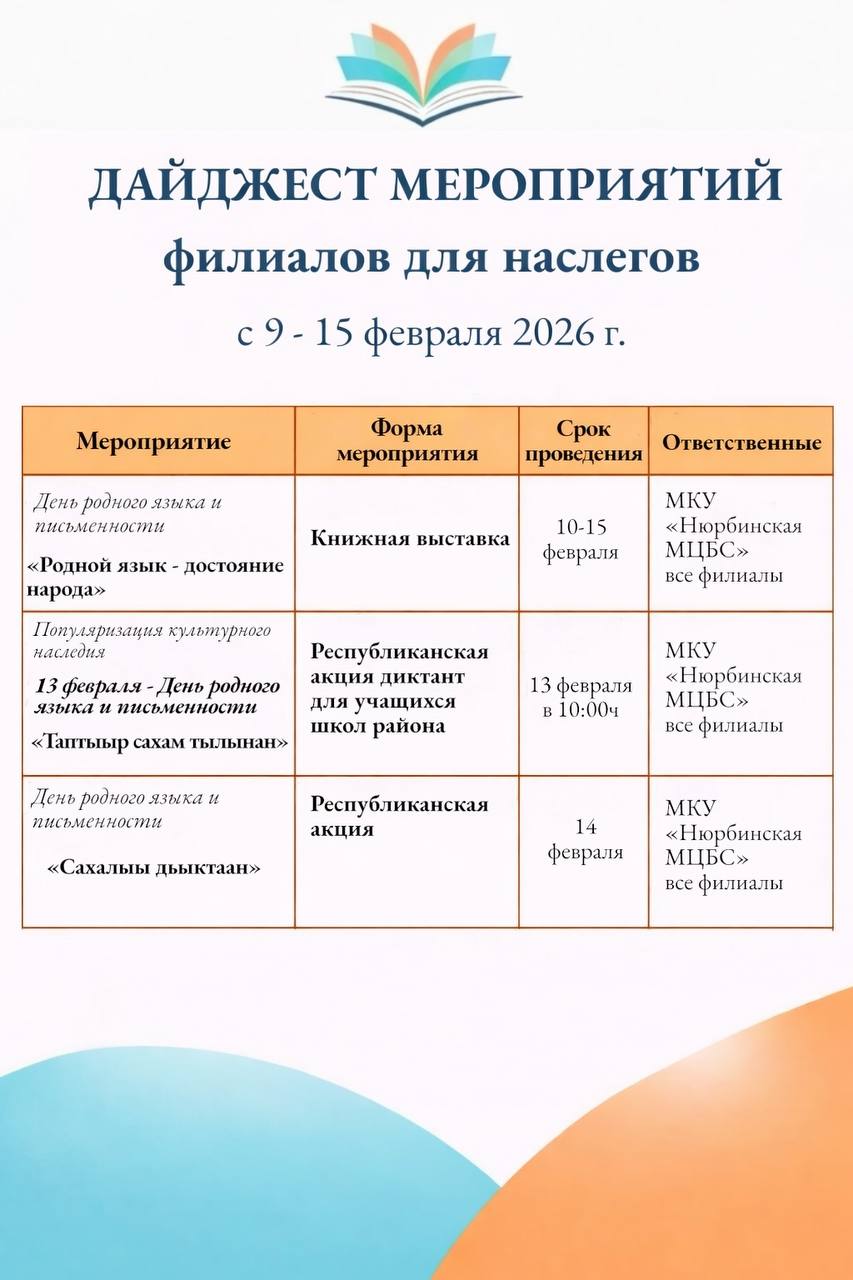 Недельный план мероприятий с 9 -15 февраля 2026 г.