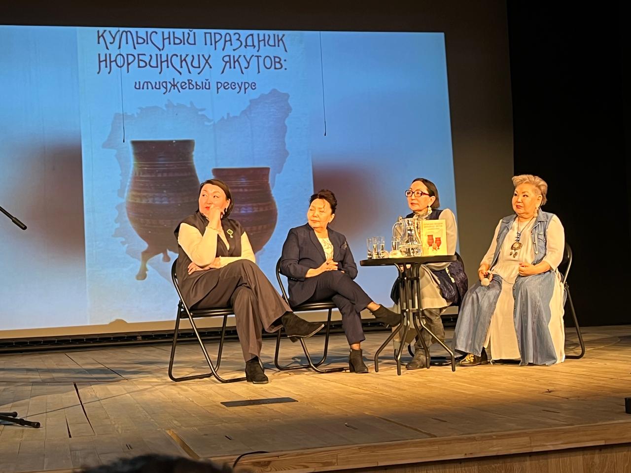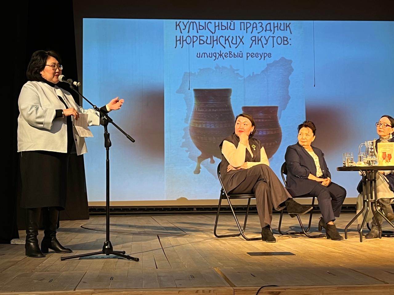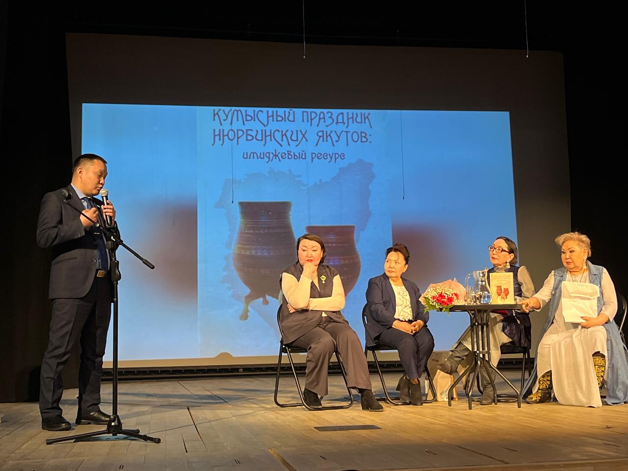 Бу улахан үлэ туһунан кэпсэтиини Ньурбатааҕы К.Д. Уткин аатынан норуоттар доҕордоһууларын түмэлин дириэктэрэ Анна Андреевна Туманова иилээн ыытта. Аан тылы бырайыак ааптара, Ньурба оройуонун култуураҕа уонна ыччат бэлиитикэтигэр департаменын салайааччыта Розалия Михайловна Тихонова этэн, кэпсэтии аанын аста. Салгыы монография туһунан Евдокия Степановна Сергина бэйэтэ, хас да сыл устата Ньурба ыһыахтарын кымыһын асчыта, Ньурбатааҕы судаарыстыбаннай драматическай тыйаатыр дириэктэрэ Анна Витальевна Багмет билиһиннэрдилэр.