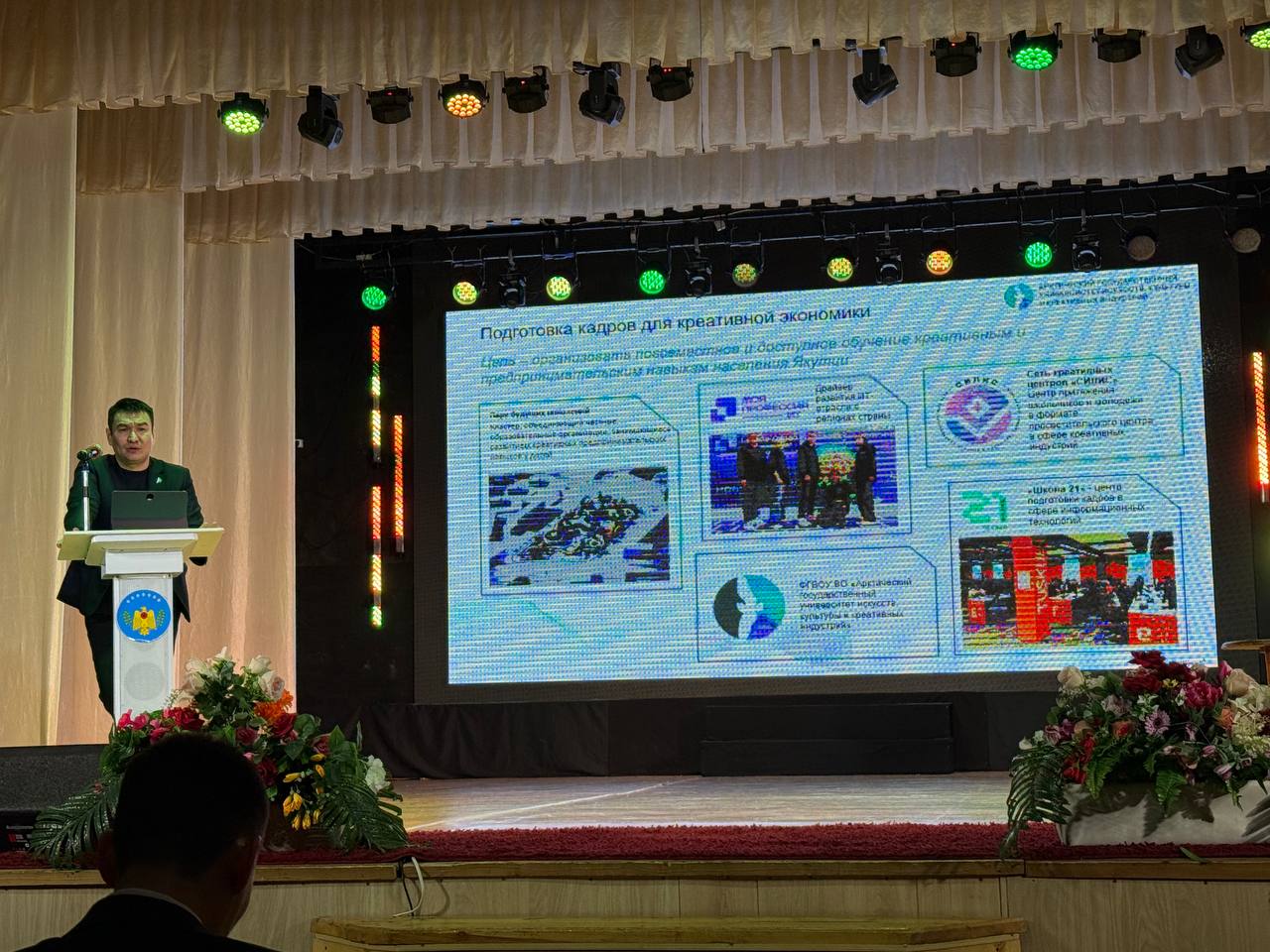 В своём выступлении спикер: дал чёткий обзор концепции креативных индустрий; проиллюстрировал тезисы конкретными примерами из практики РС(Я); показал, как креативные индустрии стимулируют развитие регионов — не только в экономическом, но и в социокультурном измерении.