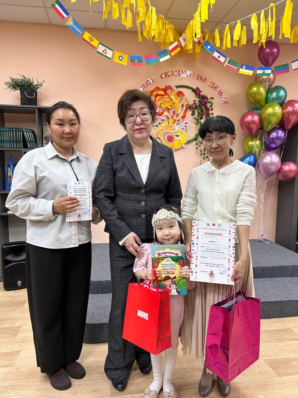 «Нуучча остуоруйатын сахалыы кэпсээччи» — «Биһик» уһуйаан иитиллээччитэ Степанова София (5 саастаах) ийэтинээн Наталья Даниловналыын, балтынаан Сияналыын (4 саастаах). Остуоруйата: “Куоска, бөтүүк уонна саһыл”. Салайааччыта: Егорова Евдокия Ивановна.