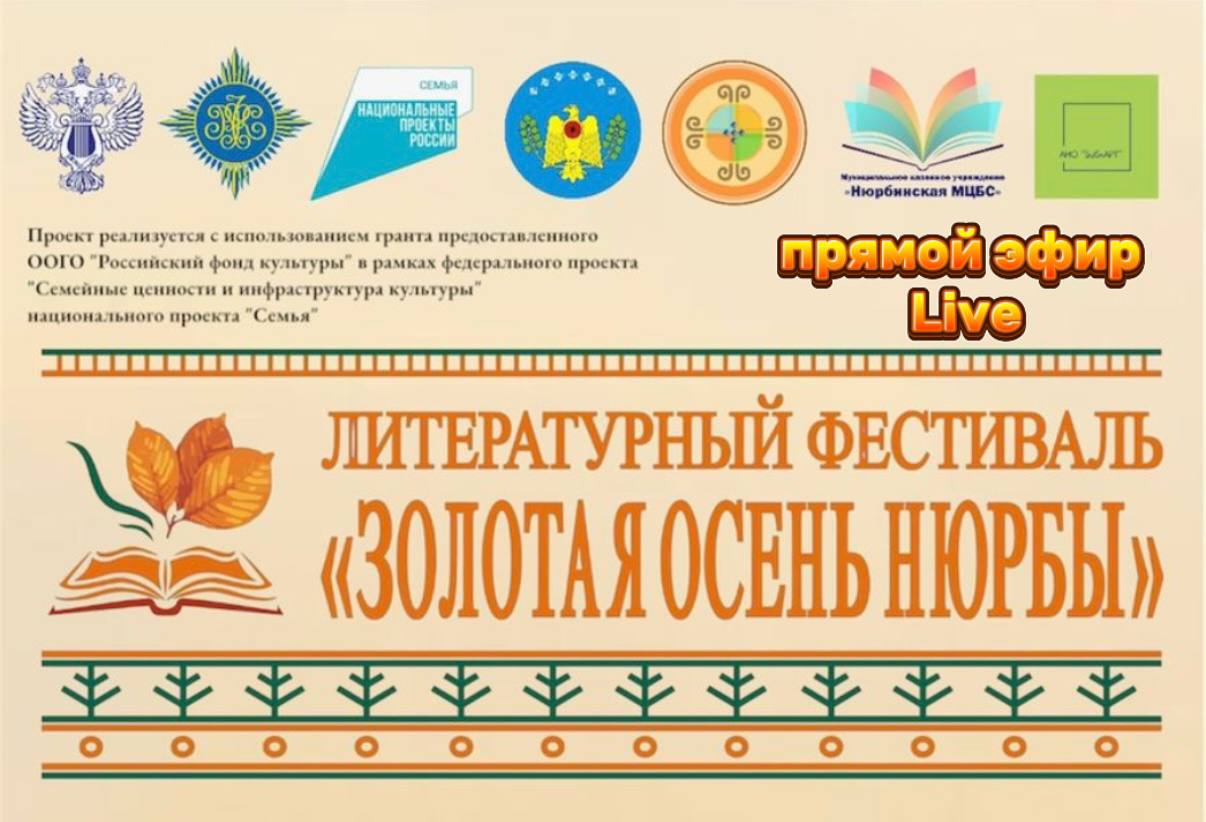 Литературный фестиваль «Золотая осень Нюрбы» реализуется АНО «БИБЛАРТ» Нюрбинской МЦБС с использованием гранта, предоставленного ООГО «Российский фонд культуры» в рамках федерального проекта «Семейные ценности и инфраструктура культуры» национального проекта «Семья».