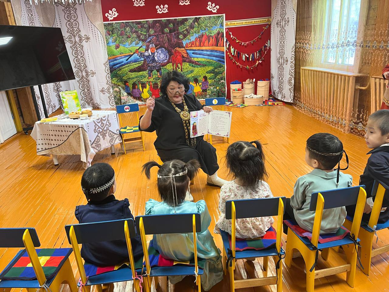 С.Данилов Олунньу 13 күнүгэр «Көмүсчээн» уһуйаан иитиллээччилэригэр саха тылын уонна сурук-бичик күнүн чэрчитинэн кырачааннарга саха культуратын,тылын-өһүн билиһиннэрэр, суолталыыр тэрээһин буолла.