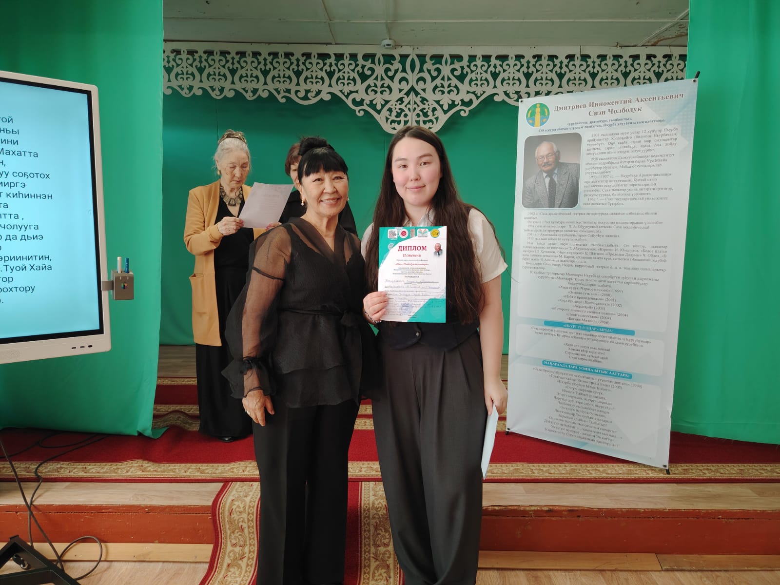 Бу научнай практическай конференция тэрийээччилэригэр Багдарыын Сүлбэ аатын сүгэр Ньурбачаан орто оскуолатыгар, Ньурбачааннааҕы олохтоох библиотекаҕа чаҕылхай олоҕу олорон, үйэлэргэ умнуллубат үлэлэри хаалларбыт И.А. Дмитриев-Сиэн Чолбодук аатын үйэтитиигэ үлэлэрин иһин махтал тылларын тиэрдэбит.