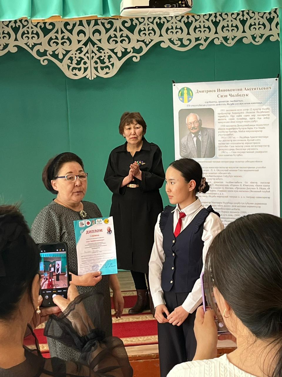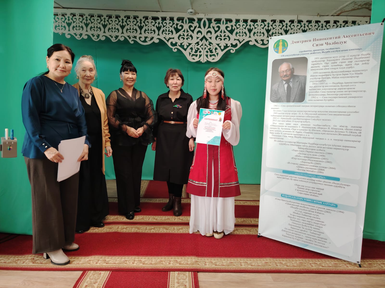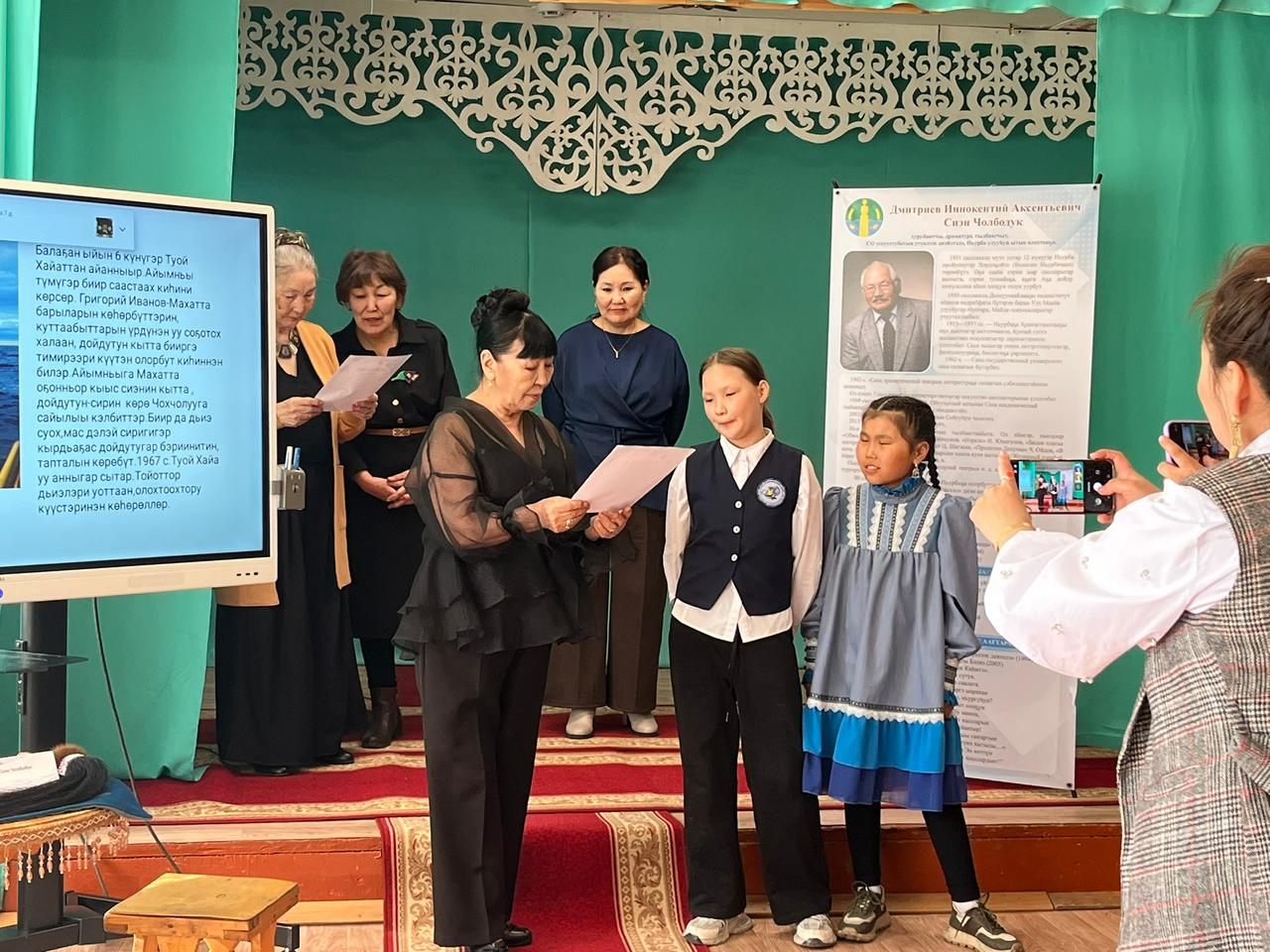 Улахан дьоҥҥо икки учуутал иккиэн кыайыылаах аатын ылан эр бии бастакы үрдэли ыллылар: Ньурба гимназиятын саха тылыгар, литературатыгар үөрэтээччи Сандаара Игоревна Тобонова суруйааччы «Туой Хайа» айымньытын нөҥүө Сиэн Чолбодук экспедицияҕа үлэтин, бэлиэтээһиннэрин сонуннук иһитиннэрдэ, Сүлэ оскуолатын дириэктэрин солбуйааччы Людмила Романовна Иннокентьева драматург, тылбаасчыт быһыытынан тыйаатырга үлэтин киэҥник арыйда.