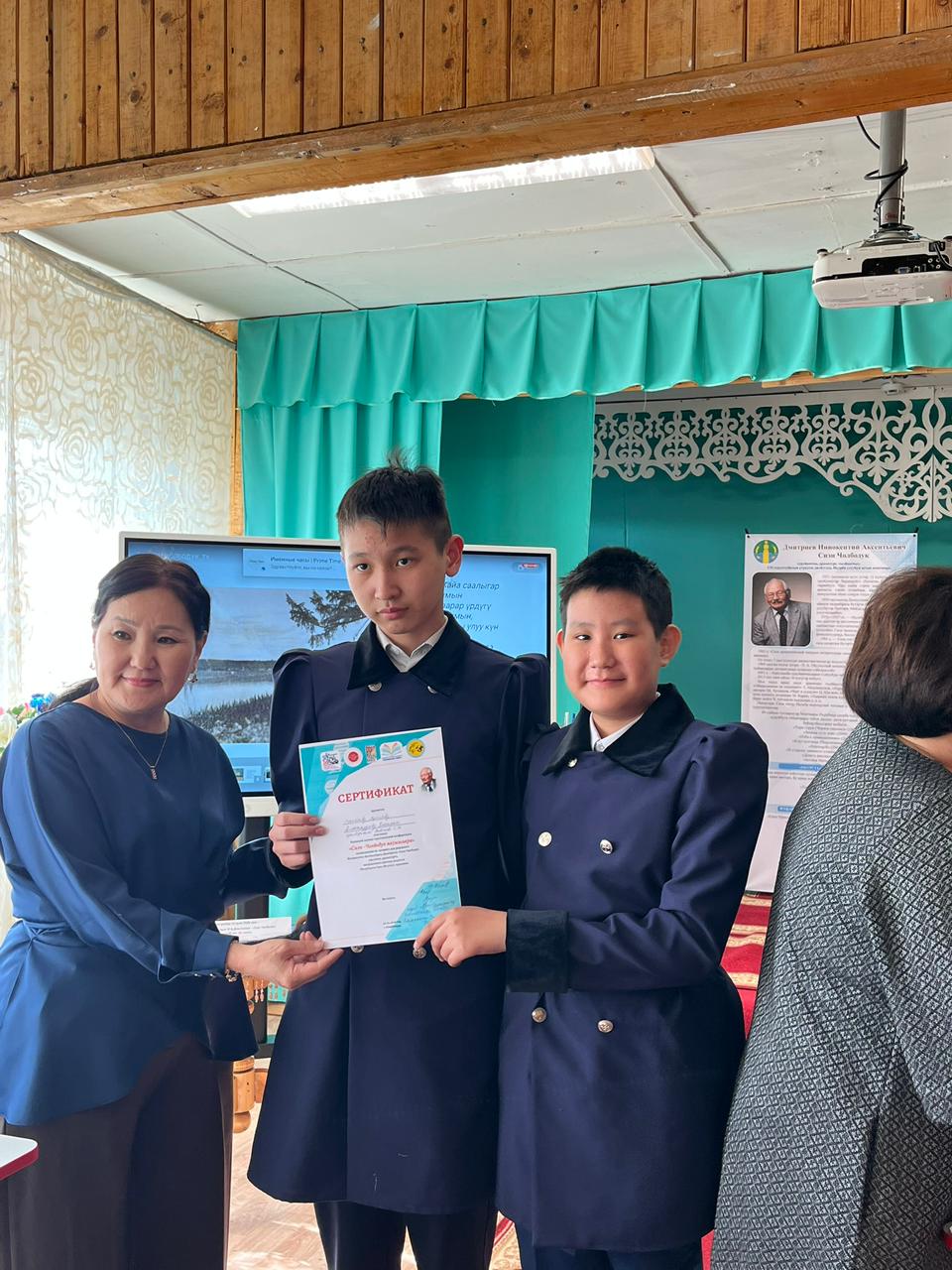 «СУРУЙААЧЧЫ АЙЫМНЬЫЛАРЫГАР КЫРАКЫЙ КИНИГЭЛЭР» хайысхаҕа кыайыылаах Сүлэ оскуолатын 7 кылааһын үөрэнээччитэ Чэмэлиинэ Никифорова, иккис үрдэл Ньурбачаан 3 кылааһын үөрэнээччитэ Айсаана Васильева.