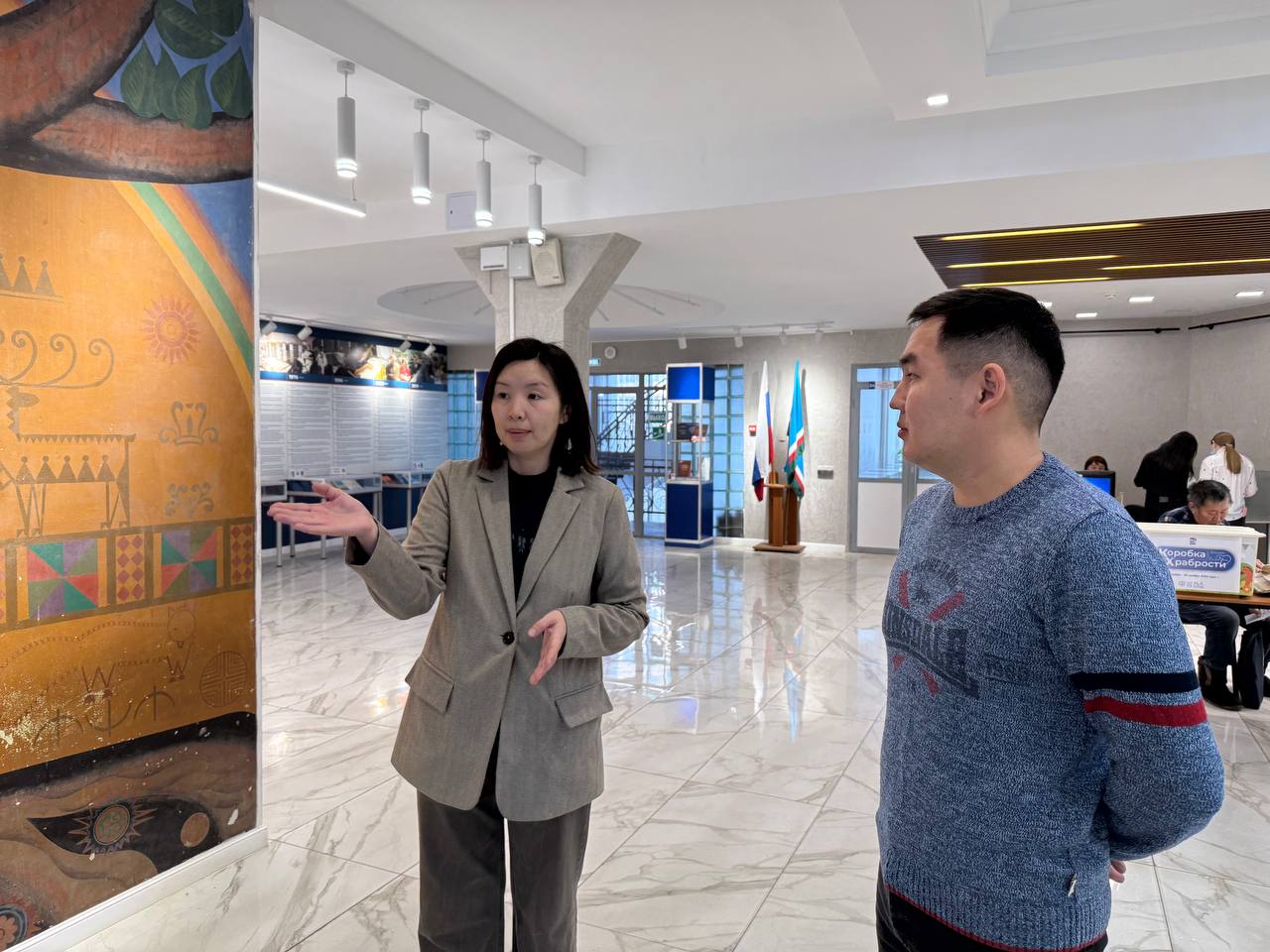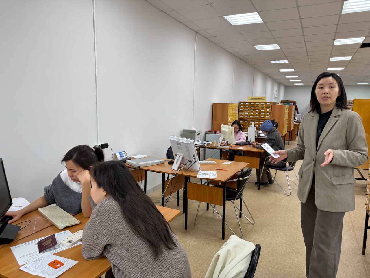 Первая половина дня была посвящена экскурсии и знакомству с отделами Национальной библиотеки РС(Я). Экскурсию провела заведующая медиацентром Аина Прибылых. Под её руководством мы смогли ознакомиться с различными подразделениями библиотеки, узнать историю каждого отдела и увидеть, как организована работа каждого отдела.
