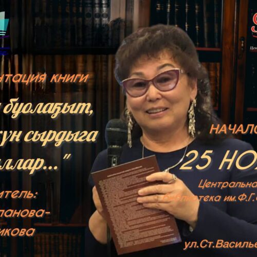 - Наталья Васильевна Степанова-Каретникова «Эһиги буолаҕыт, аанньаллар, үрүҥ күн сырдыга сарыаллар …» диэн кинигэтин кэтэһиилээх презентацията буолла.