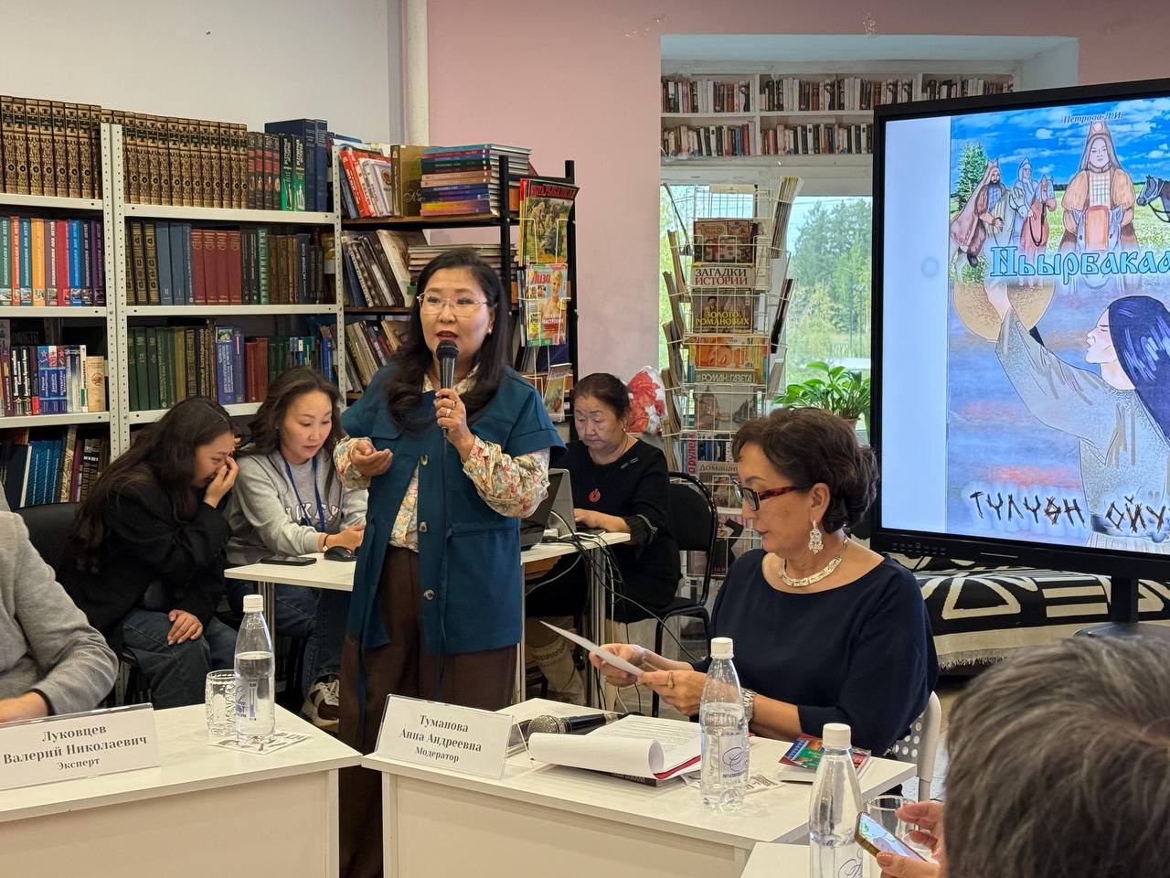 Далее выступила главный редактор газеты“Ньурба-Огни Нюрбы” Лена Петрова, которая представила свою книгу-комиксов «Ньырбакаан, Түлүөн Ойуун», «Ньурба күөлү түһэрии». Эта книга представляет собой удивительное сочетание традиций народного творчества и современных форм визуализации историй через комикс-формат. Благодаря таким инициативам происходит возрождение интереса молодёжи к своему культурному наследию через доступные и современные средства коммуникации.